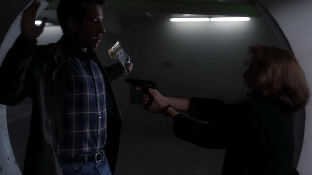 Tom Coulton, a former classmate of Dana’s asks for specifically Dana’s help to create with a killer profile for a murder he’s investigating. Some guy named Upsher was murdered in his office. Why on Earth would Coulton not ask for Fox’s help is anyone’s guess. Fox specializes in criminal profiling and his work led to the arrest of Monty Propps in 1988. Scully’s skill in criminal profiling is far less renown.