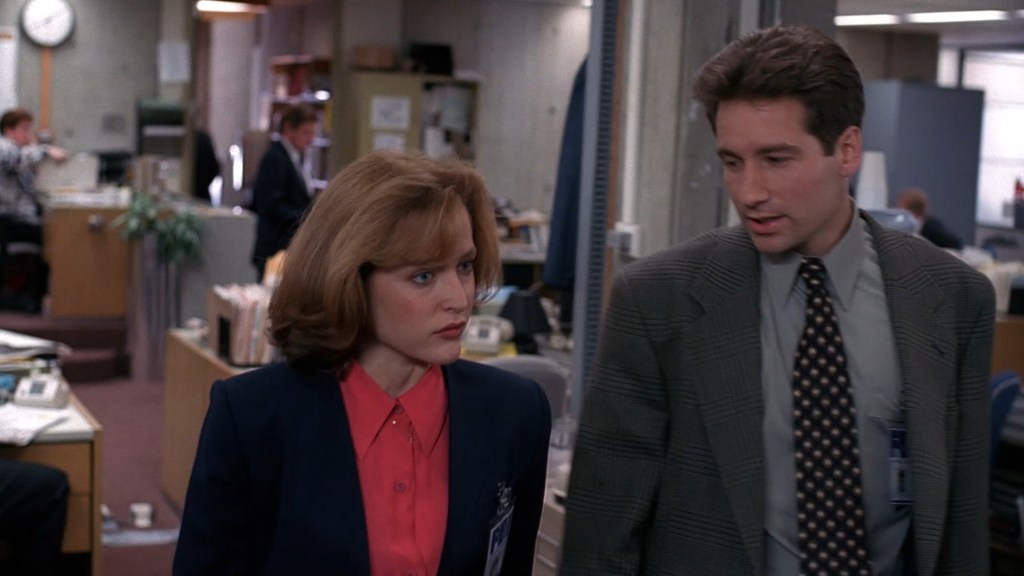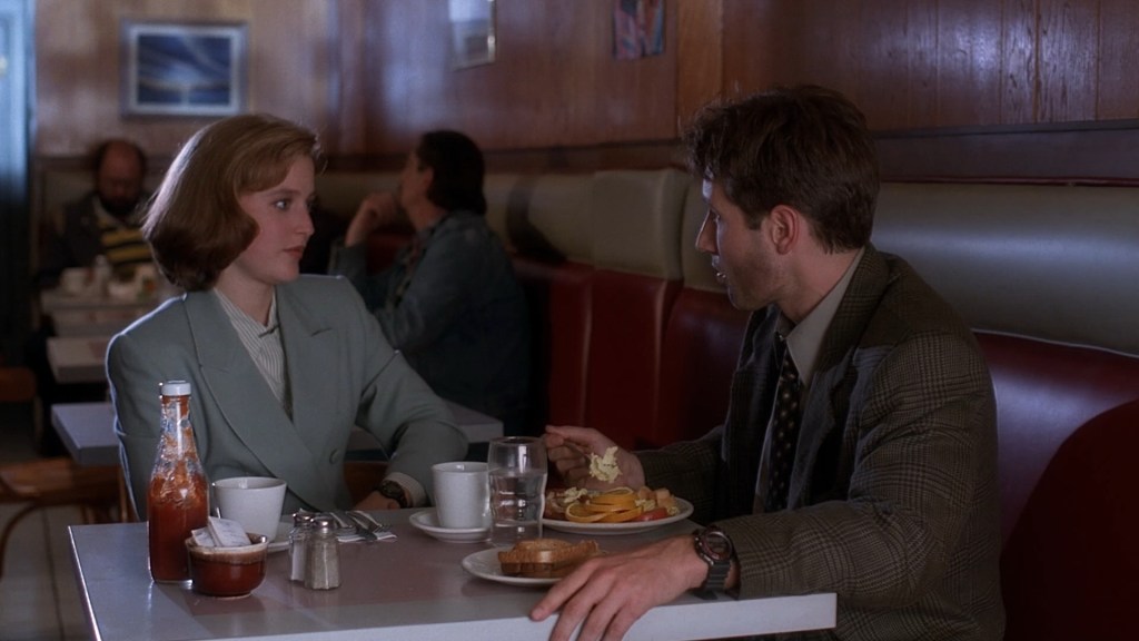 We open the episode with Mulder reading dirty magazines in his office (a waste of taxpayer money, $4.99) when Scully tells him there’s a man who was found in Atlantic City with his right arm and leg eaten off by a human. She thinks they should investigate.