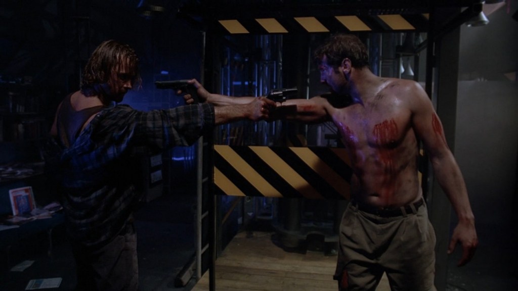 After Bear’s death, everyone’s on edge. That night everyone barricades themselves in their rooms. Mulder hears noises in the main area of the base and investigates. He finds Murphy’s dead and clearly murdered body in another broken refrigerator. And just at that time the team finds Mulder and assumes he killed Murphy. So now it’s a murder mystery show. Someone on the team is infected and that person killed Murphy. But who is it?!