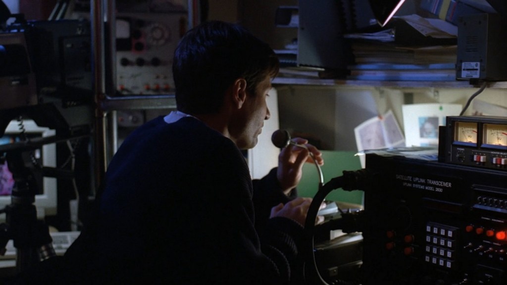 After this we get one of my favorite recurrent X-files things to happen that often gets overlooked on fan sites, and that is an SOS call over the radio. Seriously these things happen a lot on this show. And when they do they are sooooo cheesy; Scully makes an SOS call asking for help and like… earlier she didn’t want help because she didn’t want to start the next COVID but I guess now she changed her mind. You have to watch for these SOS calls cuz they make them a lot; they’re even cheesier when Mulder makes the calls. It’s actually the second call made in this episode because I skipped the first.