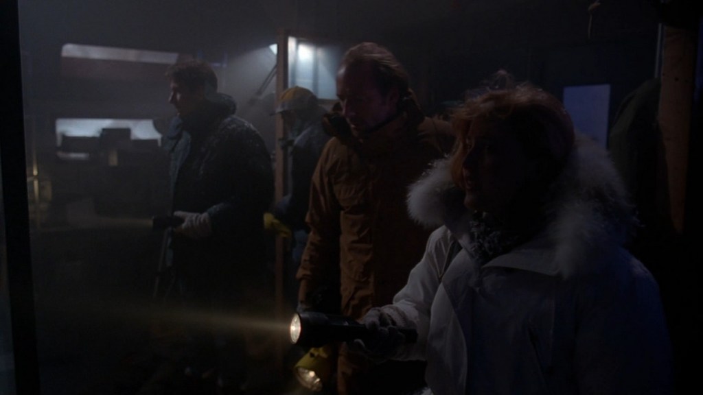 At Nome Scully and Mulder meet up with their “team” to investigate what happened to the Ice Core Project people. Their new team is rather uninformed and paranoid as to the identities of who’s going to the Arctic base.