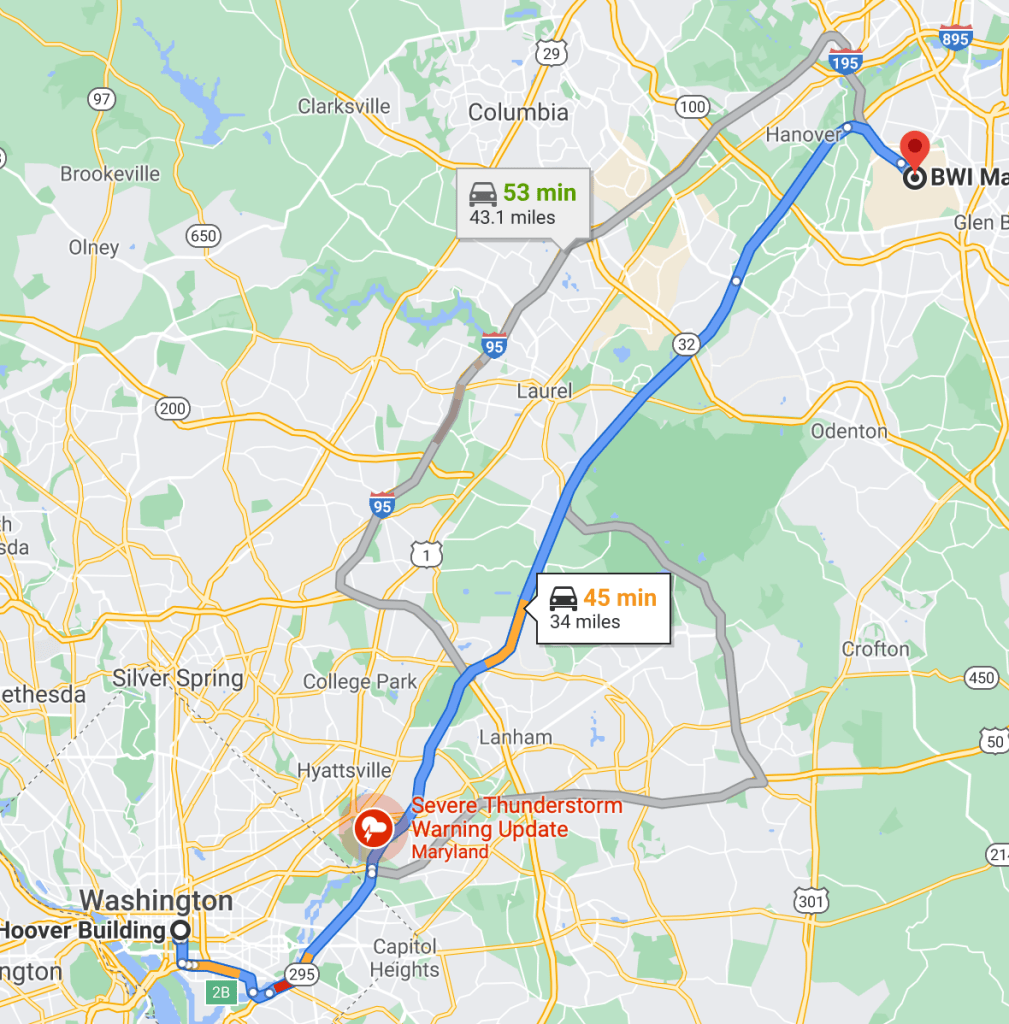 - Go to the FBI, requisition a vehicle and drive that to BWI and again pay for parking or finally